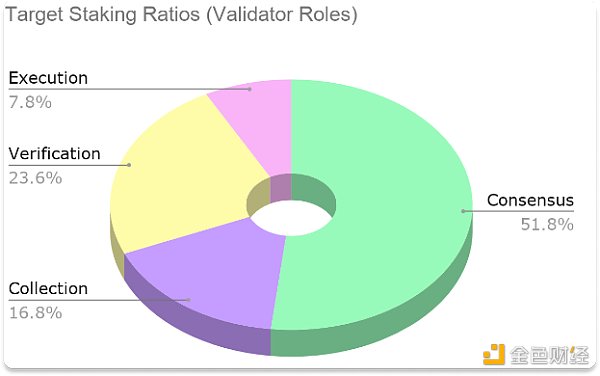 Flow是一條權益證明(PoS)的區塊鏈,換言之所有的節點都要質押FLOW通證以參與網絡,并獲得FLOW通證獎勵(如果作惡,它們質押的FLOW就會被沒收)。由于Flow鏈的多節點架構,四類節點的相對收益會動態變化,以保證節點數量的平衡。根據《Flow通證經濟學白皮書》,每類節點的目標比例如下: