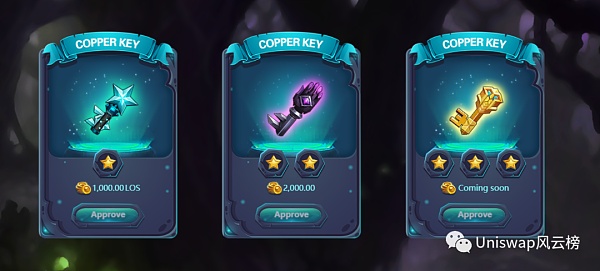 第二步:進入「Buy keys」界面,點擊「Copper key」的「Approve」按鈕,輸入你要購買的鑰匙數量后點擊「Confirm」,錢包簽名成功后即購買成功。