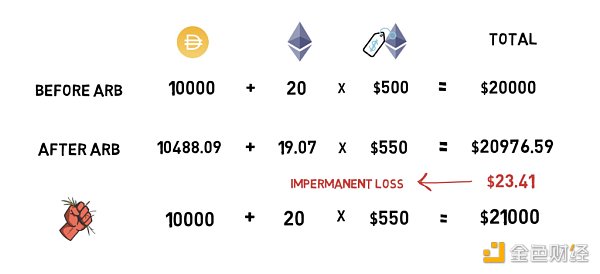 另一方面,如果LP決定在以太坊550美元時決定撤回其流動性,他們將永久性的損失23.41美元。