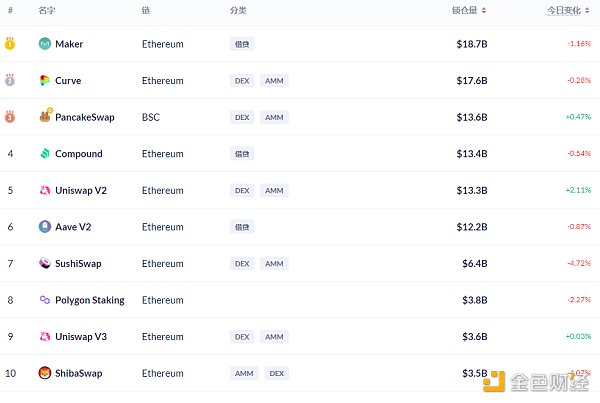 DeFi項目鎖定資產前十排名及鎖倉量,數據來源:Debank