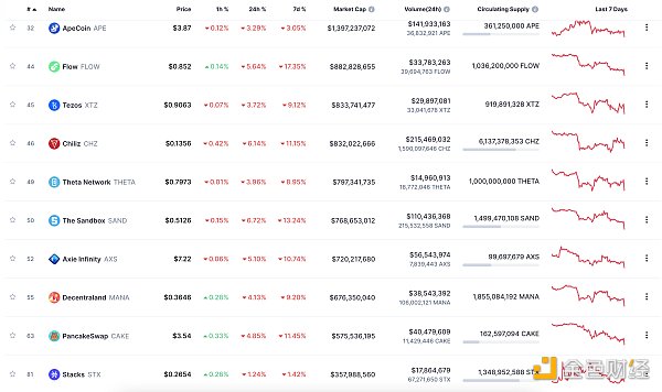NFT總市值、市值排名前十項目 數據來源:Coinmarketcap