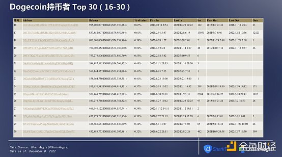 Top 3地址從2022年11月9日才開始第一筆轉入交易,現占Dogecoin總量的5.28%。