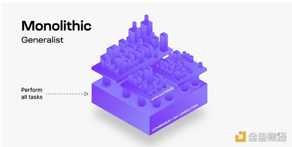 單體區塊鏈是執行所有任務的通用區塊鏈。實際上,單體鏈的做法就是“自己包攬所有事”。