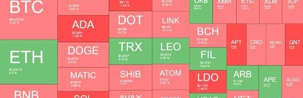 XRP/HKD+2.34%除了昨天短暫上漲和下跌約500美元外,比特幣一直相對停滯在略低于27,000美元的水平。