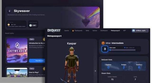 DeQuest是一個從Quest系統切入的GameID平臺,其做了非常有意思的游戲化設計,使用戶的GameID以虛擬形象的形態呈現,在完成任務的過程中可以解鎖裝備和技能。