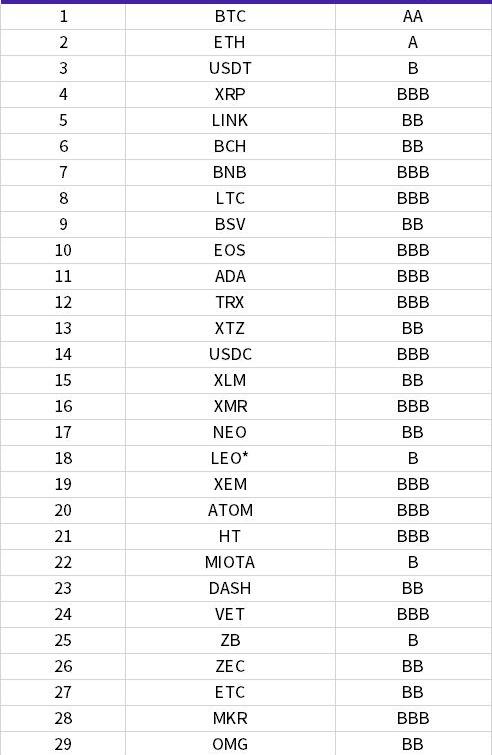 審核結果如下,下表的排名包括樣本空間內全體通證: