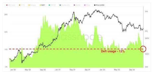 在穩定幣繁榮之后不久,DeFi緊隨其后;從2020年2021月開始,Uniswap成為領先的DeFi天然氣用戶,在12年2022月左右達到頂峰,然后逐漸下降。到2020年,DeFi的使用率平均保持在XNUMX%左右,高于XNUMX年初的使用率。
