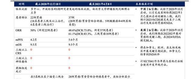 3.1.4.CT041胃癌數據亮眼,有望成為晚期胃癌最佳療法