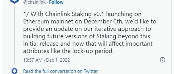 在我們本周最值得關注的3種代幣列表中排名第一的是另一個準備推出代幣質押功能的項目——Chainlink。LINK質押是所謂的“ChainlinkEconomics2.0”升級的核心部分,將于2022年12月6日美國東部時間下午12:00在以太坊主網上上線。Staking的推出將使LINK代幣持有者和節點運營商獲得獎勵,同時有助于提高Oracle服務的加密經濟安全性。