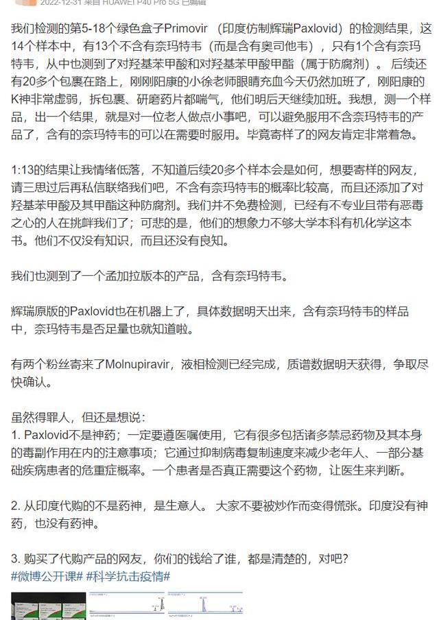 從上文中我們可以知道,Paxlovid里面兩大重要組成之一就是奈瑪特韋。而國內一些專家在對從患者、朋友手中遞上來的多批次仿制藥檢測中并未發現奈瑪特韋。