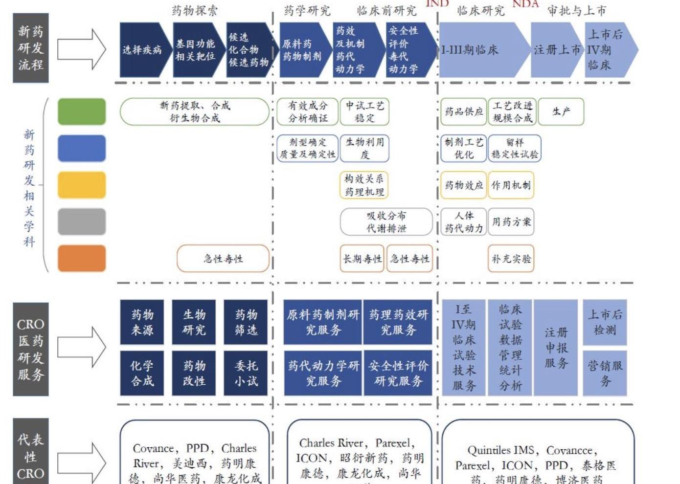 在苗頭化合物基礎上,再經過一系列優化和確認后,像進行體內外的活性測試、理評價和藥代動力學研究等,就形成了具有良好的生物活性和較好的藥物性質和安全性的化合物——先導化合物。這一部分也被成為臨床前研究的藥物發現與探索。之后,再經過漫長且風險的臨床試驗、監管審批,某款被驗證的藥物或有最終上市的可能。