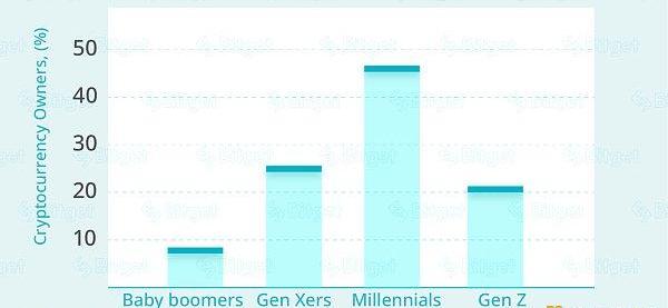 數據亦指出,千禧世代對加密資產最為忠誠,因為與老一代相比,他們對網絡、電子科技更為熟悉。該年齡段的人也開始建立他們的投資組合,并認為加密資產極具吸引力,因為在2017年后加密資產顯示出高回報潛力。Z世代的受訪者也喜歡現代技術,且傾向于使用區塊鏈技術與數字資產,該群體為2008年后出生,沒有經歷過金融危機等事件。