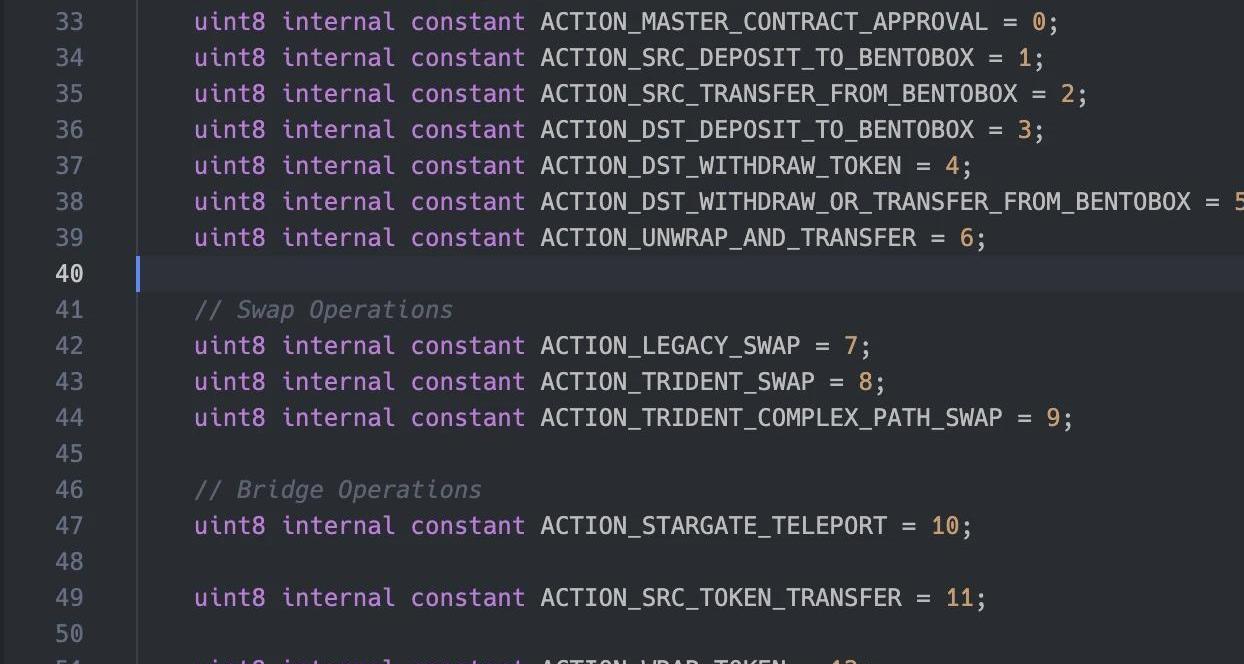 SushiXSwap中主要的功能都通過cook函數實現,該函數提供了一系列的操作,支持操作列表如下:
