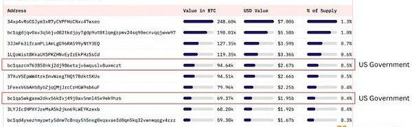 比特幣最大持有者:截至?2023?年?3?月?22?日,美國政府控制著比特幣流通供應量的?1.06%?。在十大比特幣錢包中,美國政府占了兩個名額。