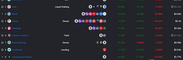 DeFi項目鎖定資產前十排名及鎖倉量數據來源:defillama