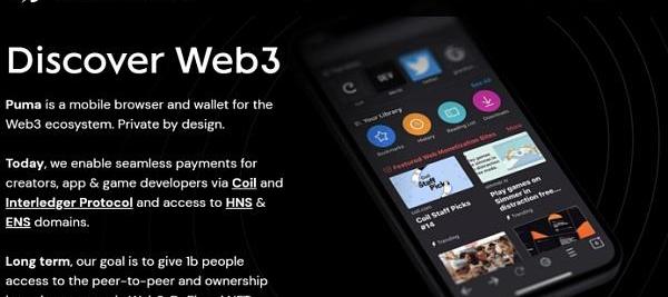 烏克蘭裔的加拿大開發人員YuriyDybskiy于2019年1月創建了Puma瀏覽器。Puma瀏覽器支持ENS和HNS域名服務以及和IPFS的入口,同時支持例如CoilContent和Interledger協議等內容創作者、App和游戲開發者的無縫支付。