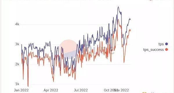 一些技術數據也支持Solana自身正處在一個發展軌道上,從年初至今每秒最大交易量數字持續增長,盡管短期受FTX事件影響,但很快恢復上升態勢。