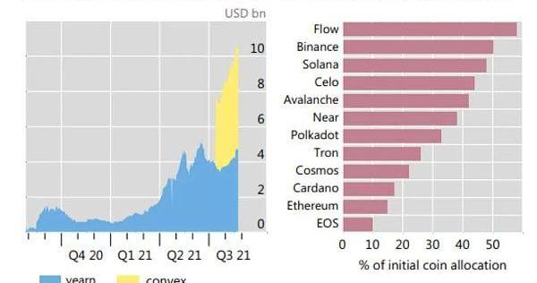 上圖顯示了各種DeFi投資組合中資本池的規模,以及對內部人員的初始token分配百分比。這很難不讓人擔心,如果區塊鏈的權力集中在極少數人的手中,那他們完全可以使用區塊鏈來為自己牟取利益。例如,利用自己控制的錢包之間的頻繁交易來使區塊鏈變得擁堵,導致轉賬費用增加,使其他用戶將不得不向這些人為造成區塊鏈擁塞的大戶支付更高的轉賬費用。