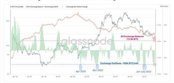 交易所見證了歷史上最大的BTC總余額凈下降之一,7天內下降了72.9萬BTC。過去只有三個時期可以與之相提并論:2020年4月、2020年11月、2022年6月至7月。
