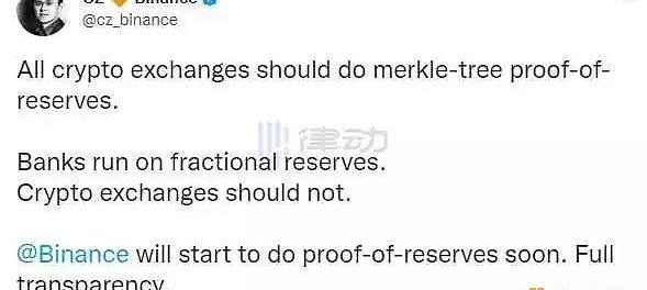 有媒體報道,SBF曾在與Binance達成收購協議前向華爾街、硅谷的億萬富翁們求助,以獲得10億美元援助資金救急。但在周二中午時,FTX的資金缺口已快速升至50-60億美元。大家突然意識到FTX可能潛在的巨大窟窿。隨后CZ在推文中表示,所有加密貨幣交易平臺都應該做默克爾樹儲備證明。銀行依靠部分準備金運作。加密貨幣交易平臺不應該如此。Binance將很快開始進行儲備證明,完全透明。
