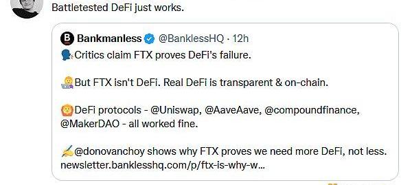 FTX的倒閉重新點燃了支持DeFi或去中心化金融的論調。