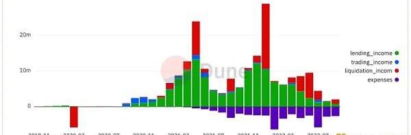 通過儀表板,可以識別不同產品的收入。在上述儀表板中顯示,Maker有幾個細分收入流,包括掛鉤穩定模塊、現實世界資產和清算。Dune是一個有用的工具,但需要一些SQL知識。