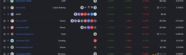 DeFi項目鎖定資產前十排名及鎖倉量數據來源:defillama