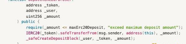 2、同樣等到授權交易被確認后,用戶調用erc20token.deposit()函數,觸發depositManager合約的depositERC20ForUser()函數,存入用戶的ERC20代幣資產。