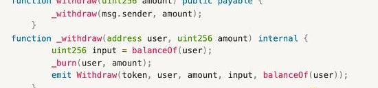 withdraw僅包含一個參數:將要被burn掉的token數量。對應的token合約中的withdraw()函數如下: