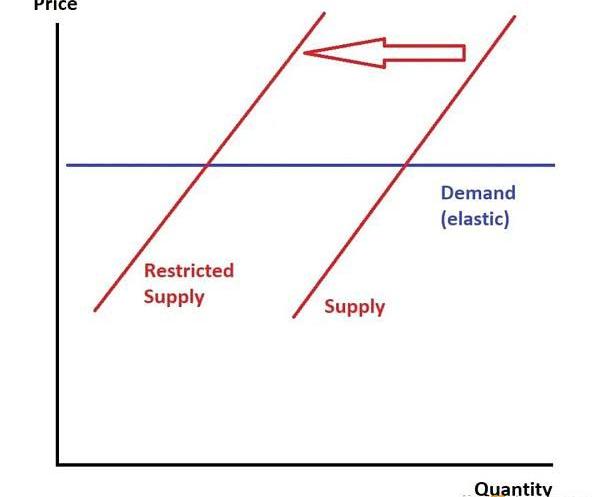 在這種情況下,需求是完全有彈性的--人們知道他們要為某物支付什么價格,而且不會多出一分錢。在這種情況下,即使你所賣的東西確實有價值——也許有很多價值!限制供應也不會提高價格,限制供應根本不會提高價格。相反,你只是賣的東西少了,賺的錢也少了。