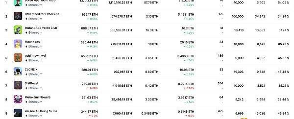 24小時內銷售漲幅前十的NFT數據來源:NFTGO