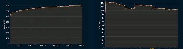 從整體上看,聰明投資者持有的CloneXNFT數量有所下降,主要是由于NFT交易員退出他們的頭寸所致。交易員通常的時間跨度較短,并且在動蕩的市場條件下更具防御性,這解釋了5月中旬風險敞口的下降。然而,傾向于長期時間跨度的聰明投資者的地址一直在增加。這表明他們對該系列的長期前景持樂觀態度。