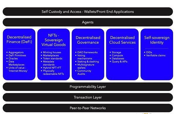 去中心化應用層:可以進一步細分為去中心化金融、NFT、去中心化治理、去中心化云服務、去中心化身份。