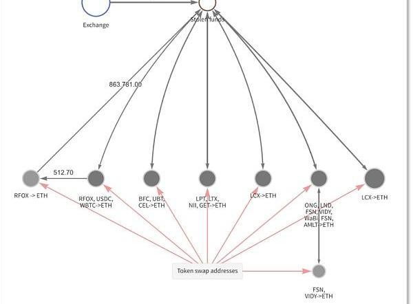 Chainalysis指出,黑客最初竊取了各種ERC-20?代幣,然后使用各種DeFi協議將這些代幣換成以太坊;黑客繼續將以太坊發送到混幣器,然后使用DeFi協議再次交換它們,這次換成了比特幣,然后將BTC轉移到幾個中心化交易所以清算并接收現金。「這只是黑客如何濫用DeFi協議進行洗錢的一個例子。」