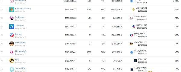 過去24小時去中心化交易所的交易量數據來源:coingecko