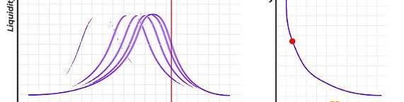 DEX的第一個主要架構是最大的去中心化交易所UniswapV1和V2中使用的恒定乘積做市商(CPMM)。忽略流動性提供者對流動性的任何添加/移除,我們可以使用如下所示的曲線來表示每種資產的數量。這條曲線上的每個點代表在“恒定乘積”不變量下每種資產可能的不同數量。因此,每筆交易都對應于沿曲線移動。曲線的某些部分彎曲得越大,交易滑點就越高。然而,流動性越高,曲線整體彎曲越小,因此滑點越低。