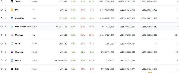 DeFi項目鎖定資產前十排名及鎖倉量數據來源:defillama