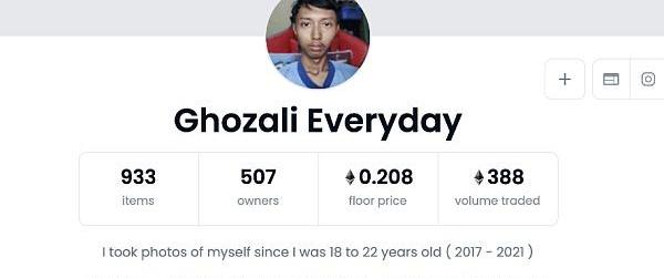 和IreneDAO差不多同時火起來的,還有GhozaliEveryday。Ghozali是一個印尼大學生,從1月10日開始,將自己從2017年~2021年每天坐在電腦桌前的自拍照做成NFT上傳到OpenSea。Ghozali自己都沒有想到,就在一天之內他突然爆紅,11號交易量飆升至500多,當前交易額度達到388ETH,地板價0.208ETH,NFT價值合計約50萬美元。不過,Ghozali還沒有推出長期的后續活動計劃,走紅更偏一個偶發事件。