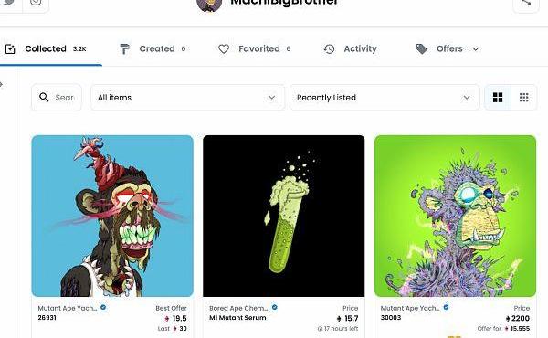 HR:那么無聊猿呢?“我其實觀察BAYC很久了,當時有好多天可以Mint,最后一天半夜我一個人先Mint了40只,然后也Call朋友來買,那個17創辦人Sam很兇啊!隨手就Mint了120只,WTF!不能輸啊!我就卯起來繼續追,Mint完了還到二級市場去收。