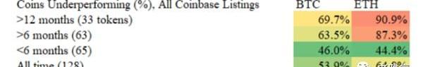 一旦一個幣在Coinbase上呆了一年,它似乎就會相當穩健地落后于比特幣和以太坊。
