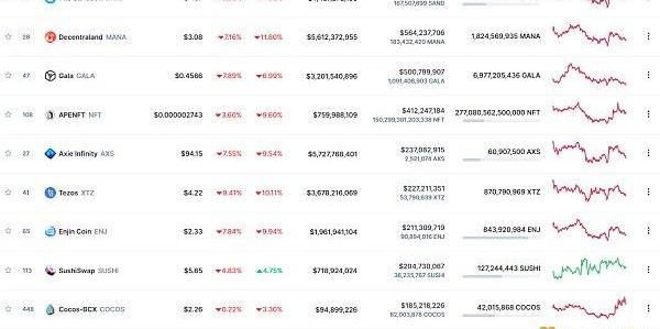 1.以太坊前1000鯨魚錢包持有超5億美元GALA,份額遠超SAND和MANA