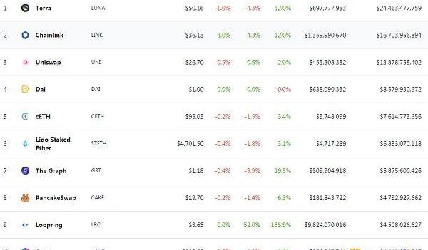 DeFi項目鎖定資產前十排名及鎖倉量,數據來源:Debank