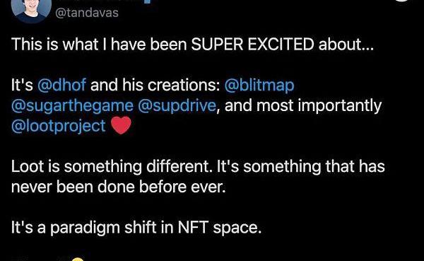 這是因為Loot本質上是一種最小可行產品,任何人都可以予以采用和擴展、構建、衍生和完成,以自己想象的任何方式完成。到目前為止,社區至少對NFT的這種新發展角度表示歡迎,從他們的積極參與以及圍繞該項目建立的知識深度中可見一斑。每個人都想成為其中的一部分。