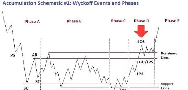 在積累模式的D階段,價格終于開始反彈,有時會在所謂的最后支撐點或稱LPS中修正一次或多次。
