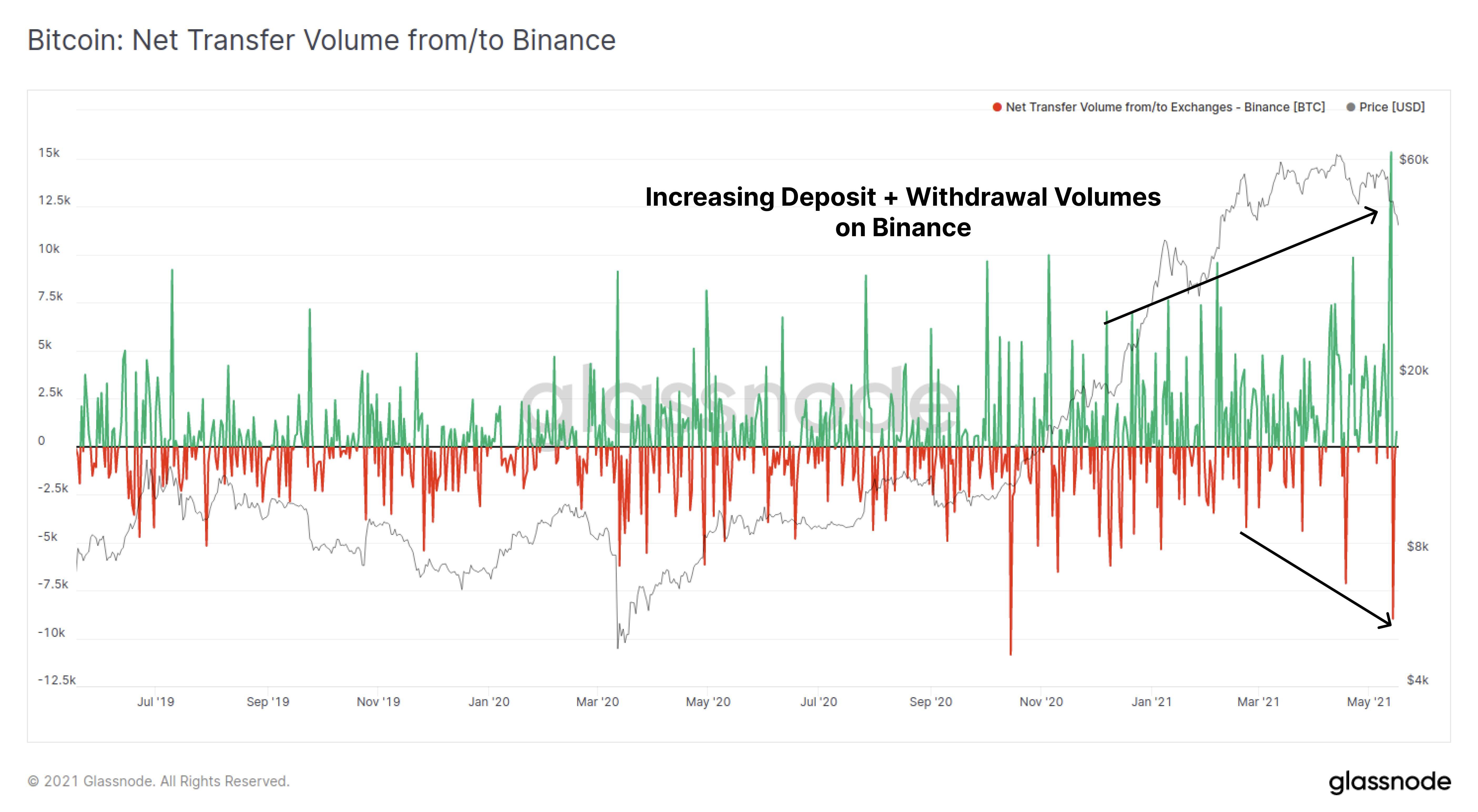 同樣支持我們的恐慌性拋售結論的證據是,近期流入交易所的BTC量創下了新高,在最近一次回調開始前,我們觀察到交易所凈流入了2.75萬BTC。這樣的流入規模,歷史上僅在2020年3月的拋售潮以及2019年PlusToken的龐氏騙局拋售潮時出現過。