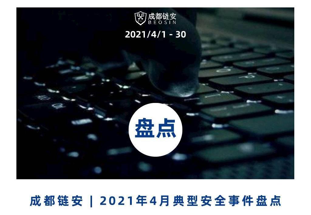 XRP/HKD+1.83%據成都鏈安安全輿情監控數據顯示:2021年4月,據不完全統計,整個區塊鏈生態發生的典型安全事件超19起,整體安全風險評級為。本月,盡管安全風險指數偏低,但各細分領域的典型安全事件均有發生,整體呈均勻分布,因此依然不可掉以輕心。