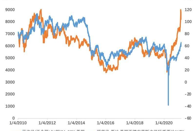 2020年底以來,由于供需缺口、全球經濟復蘇和低利率等原因,以原油和銅為首帶來商品價格上漲,推動美國PPI同比增速超預期,從而通過名義經濟增速途徑抬升利率。從去年十月至今,美國WTI原油現貨價從40美元/桶上升至65美元/桶,增長率超60%。原油作為最上游的能源,對下游均構成成本壓力。油價本身如果過度受到供給因素的影響,則會加劇美國的滯漲風險,美聯儲政策收緊風險,從而導致美債收益率沖高。銅價格從6000美元上升至如今的8400美元,漲幅約40%。帶來PPI同比增速超2.5%。2021年1季度后經濟邊際放緩、通脹預期小幅度回升、信用政策結構性收緊的周期階段,屬于經濟周期的復蘇到過熱和滯漲的過渡期,廣義流動性拐點正在到來。