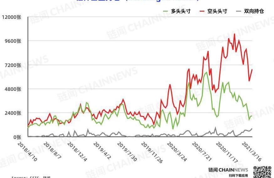 總持倉數量在最新一期數據中自8785張進一步上漲至9335張,雖然上漲幅度并不是非常可觀,但是連續兩周的資金入場還是顯示出了行情再創歷史高點背景下可觀的市場熱度。至少在行情創新高后出現快速回調的第一時間,暫時沒有特別劇烈的恐慌情緒集中涌現。