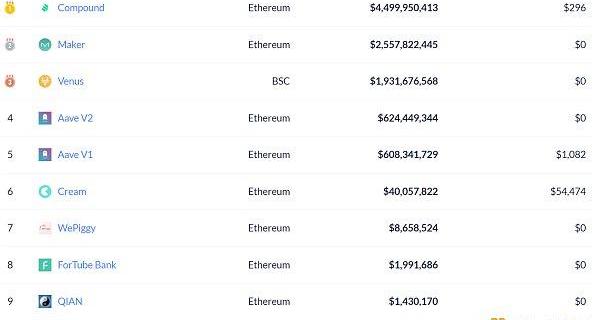 DeFi排名前十鎖倉量數據來源:DeFiPluse