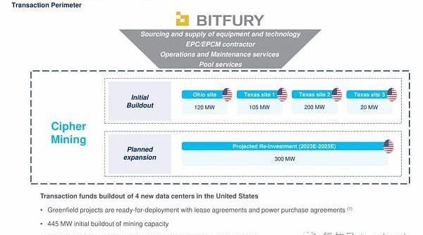 PIPE投資包括由CipherMining的母公司Bitfury進行的5000萬美元實物投資,其構成是為將來購買Cipher的運營服務和設備提供的信貸;